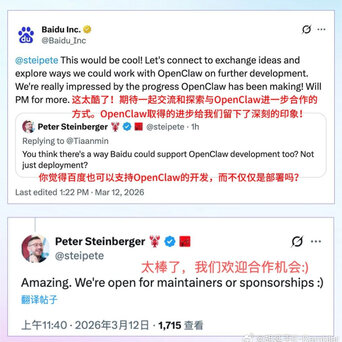 Peter Steinberger估计也是被中国速度冲击到了。百度园区“龙虾市集”上千人排队、工程师现场免费装机的盛况,让他直呼Amazing。