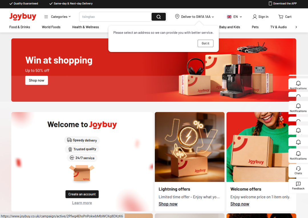 据悉,Joybuy 对29 英镑以上订单提供免费当日达服务,同时推出名为JoyPlus的会员服务,月费 3.99 英镑,用户可享受无限次免费配送。