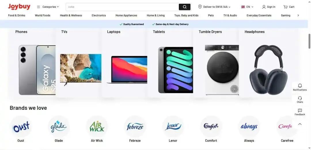 Joybuy 强调自营库存模式,Joybuy 英国区总经理坦言:“我们是一家自营零售商,在客户体验上与其他平台有明显区别。Joybuy 不会依赖低价值商品免税规则,而是以品牌零售业务为核心。”