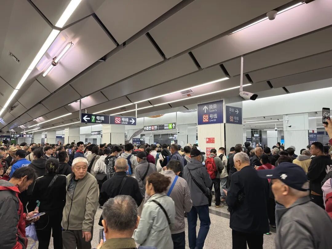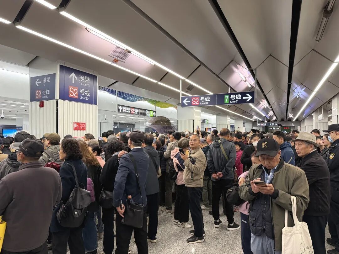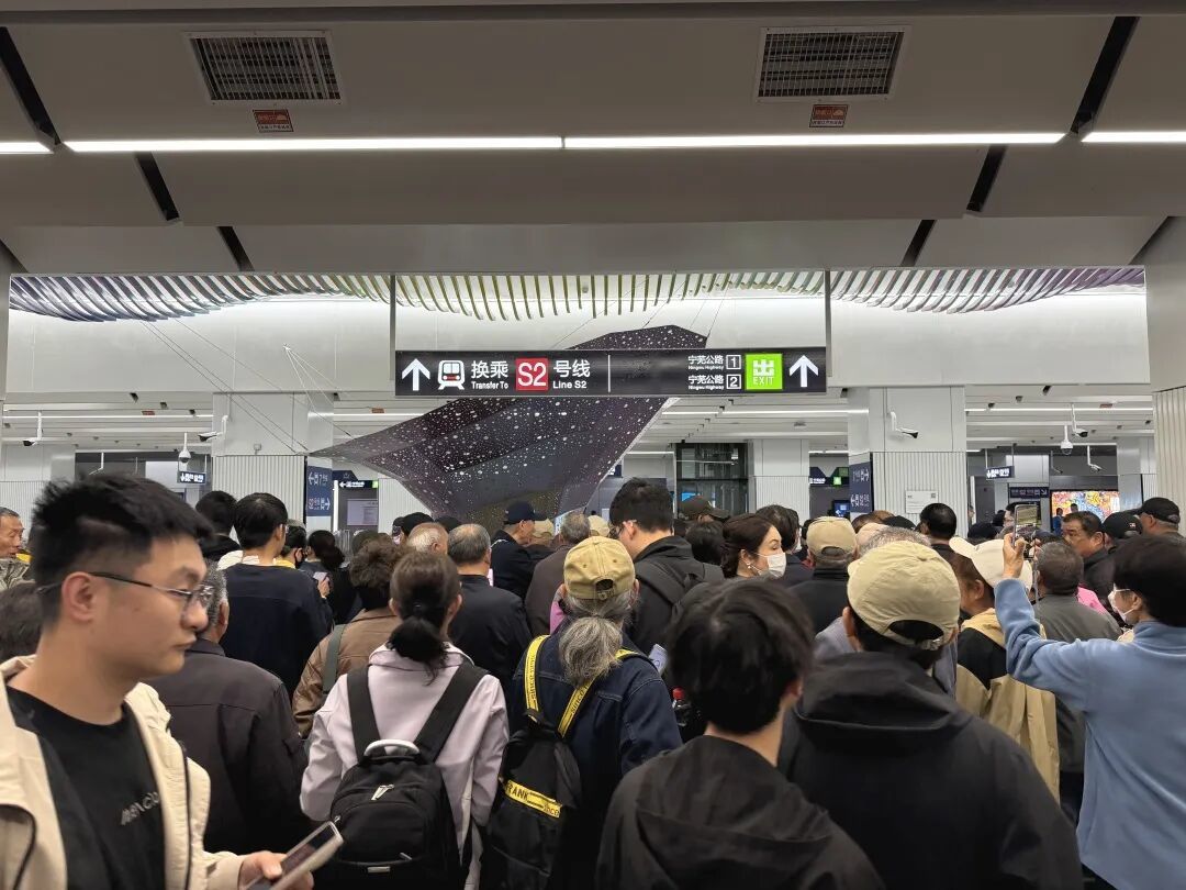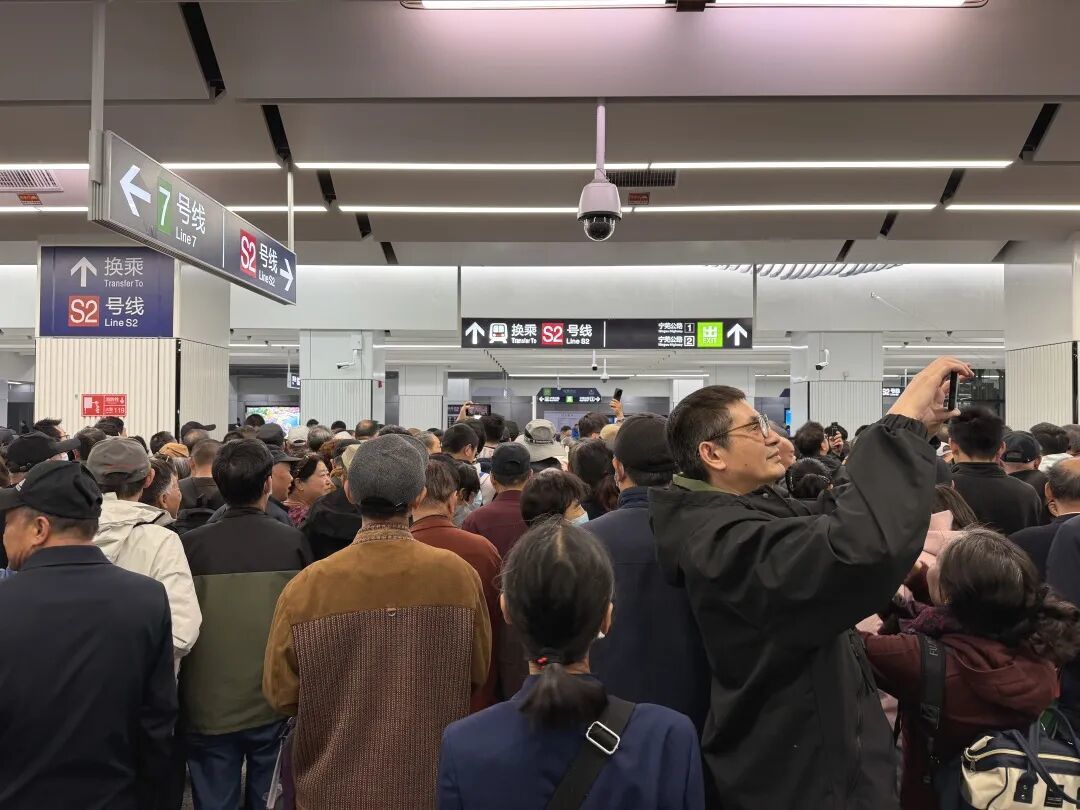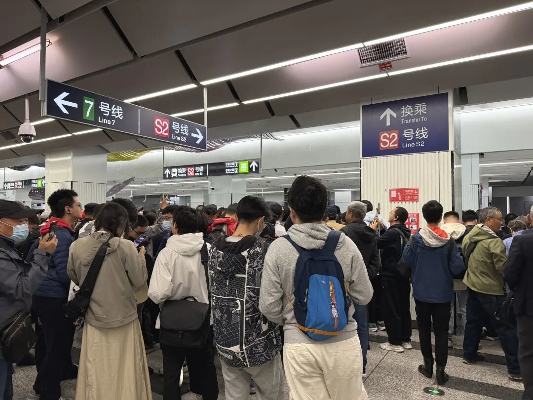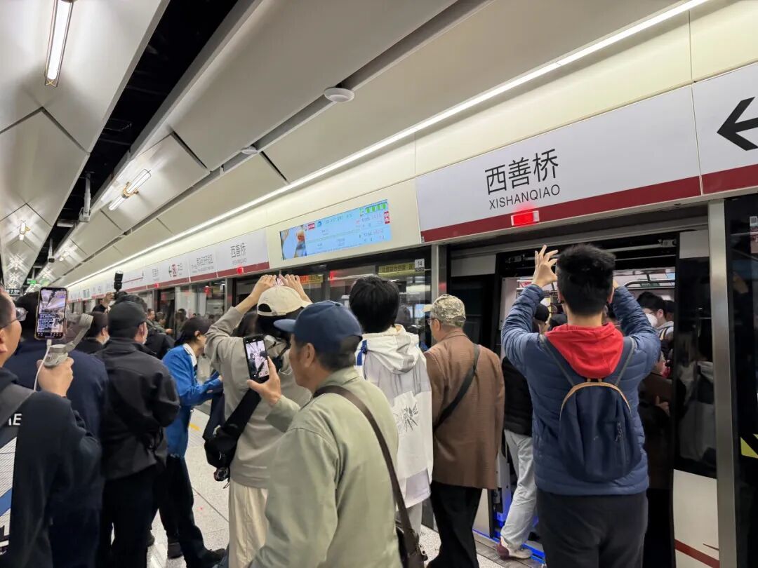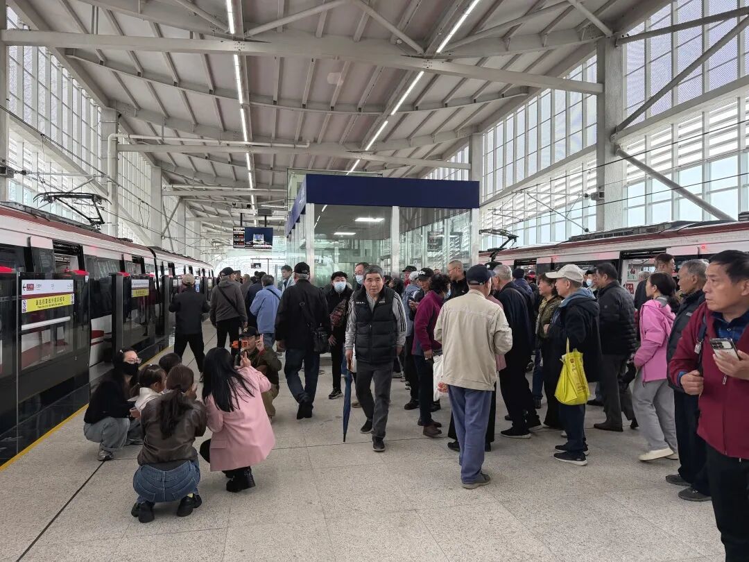 作为一条具有特殊意义的地铁,我们专门去现场体验了首发列车,和“百团大战”(交通领域的名梗)一样,简直是人山人海!